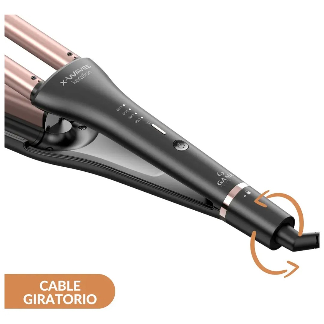 • Cable giratorio: el cable de 2 metros tiene un rotor de 360ºC, lo que te da más libertad de movimiento y comodidad al usar la rizadora.