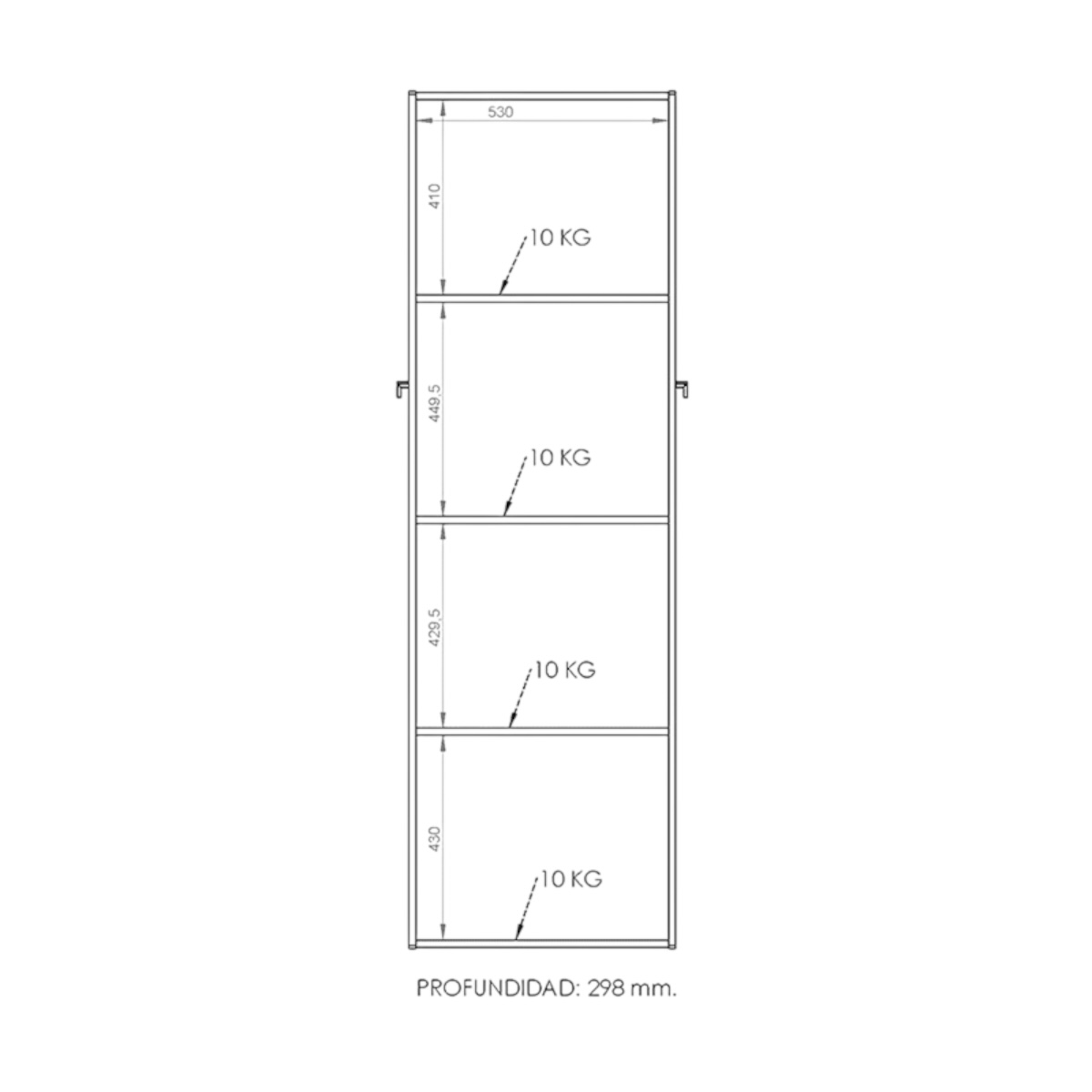 En el interior contiene tres estantes que permiten un amplio almacenamiento en relación a las medidas del producto. Posee dos puertas completas que cierran el mueble en su totalidad.