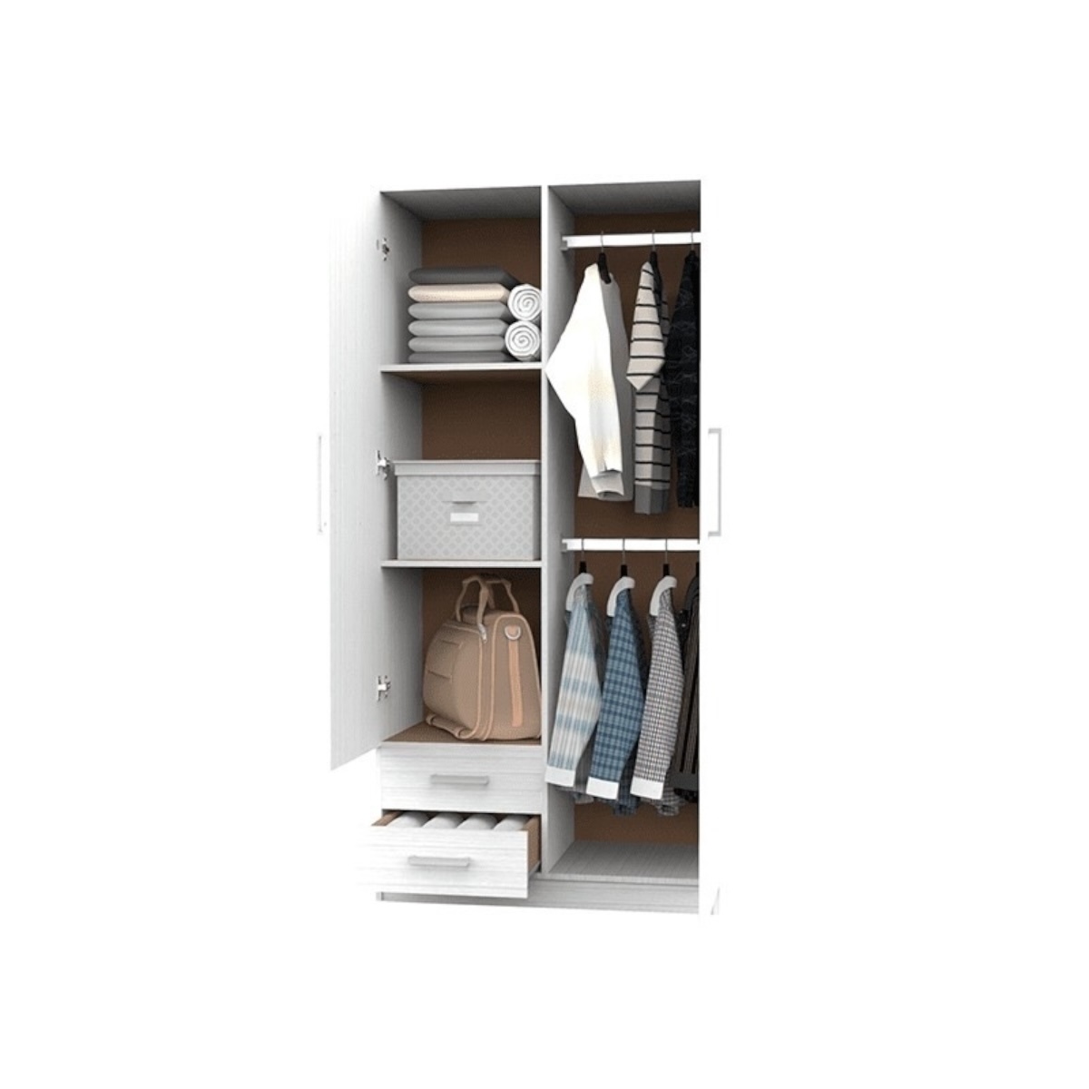 El placar de dos puertas de la línea clásica está construido en melamina de 15 milímetros tiene un diseño simple y es ideal para espacios reducidos.