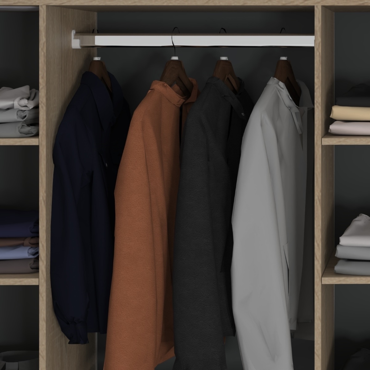 Este producto posee 4 cajones con correderas telescópicas, estantes para guardado y espacios para colgar ropa y accesorios. Además contiene un estante superior para guardar bolsos u otros objeros de mayor tamaño, y un estante inferior para poner calzados.