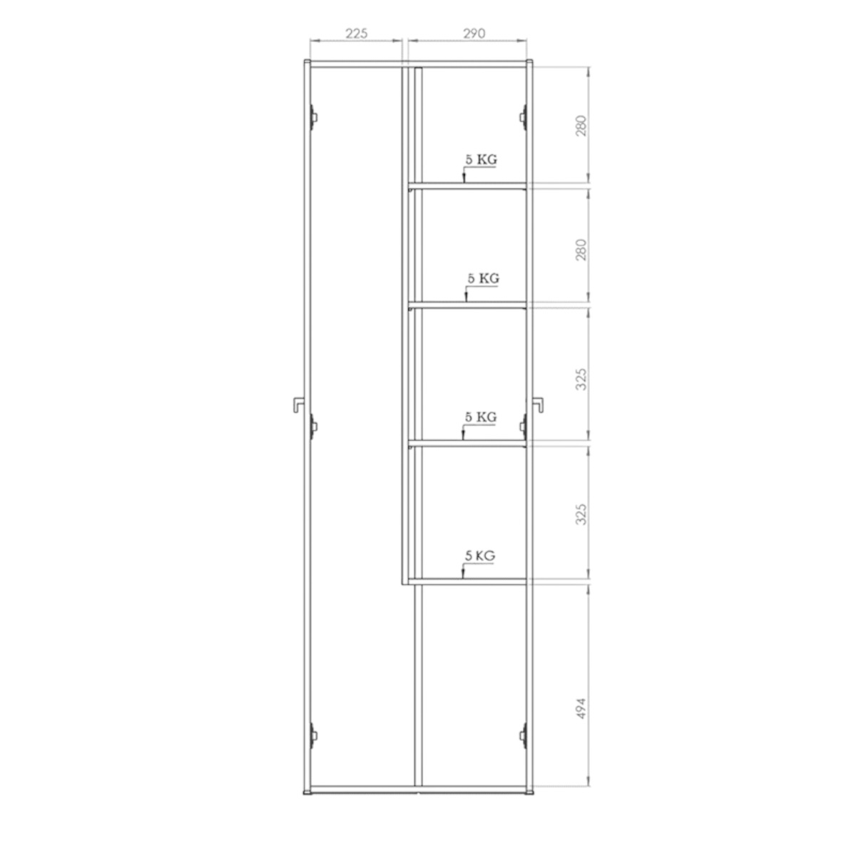 Cuenta con dos puertas frontales, y en su interior esta dividido en dos partes. Una de ellas es un espacio en donde se puede ubicar una escoba o una mopa, y en la otra parte estantes en donde se pueden colocar todo tipo objetos. Por otro lado, en la parte inferior, se puede colocar un balde sin ningún problema, por lo que se considera un mueble ideal para utilizar como organizador de productos de limpieza.